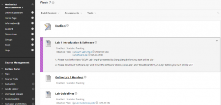 Fig 4. Lab teaching content on Blackboard from the viewpoint of a student
